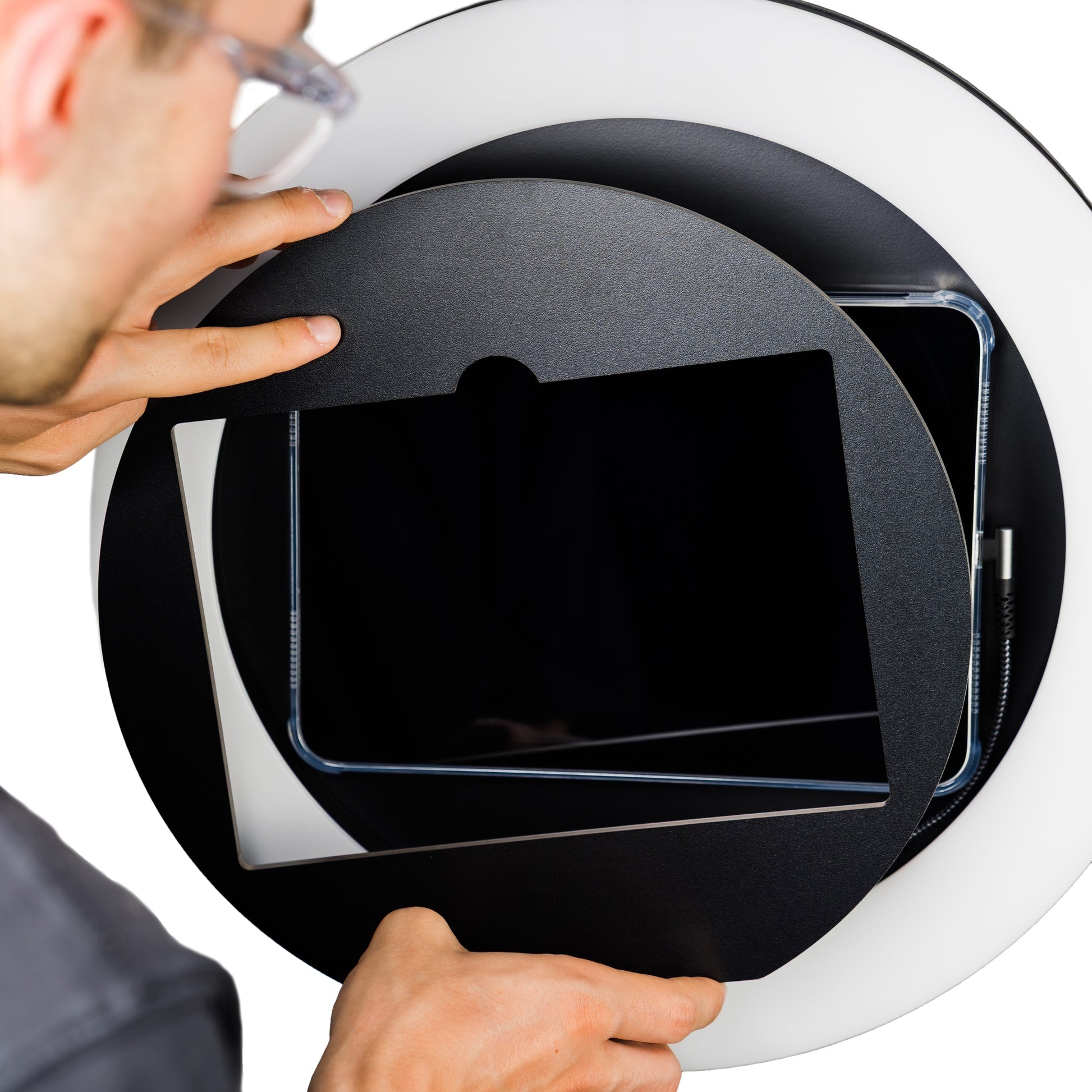 - Fotobox-Korpus (LED Ring, iPad-Halterung & Stativaufnahme)