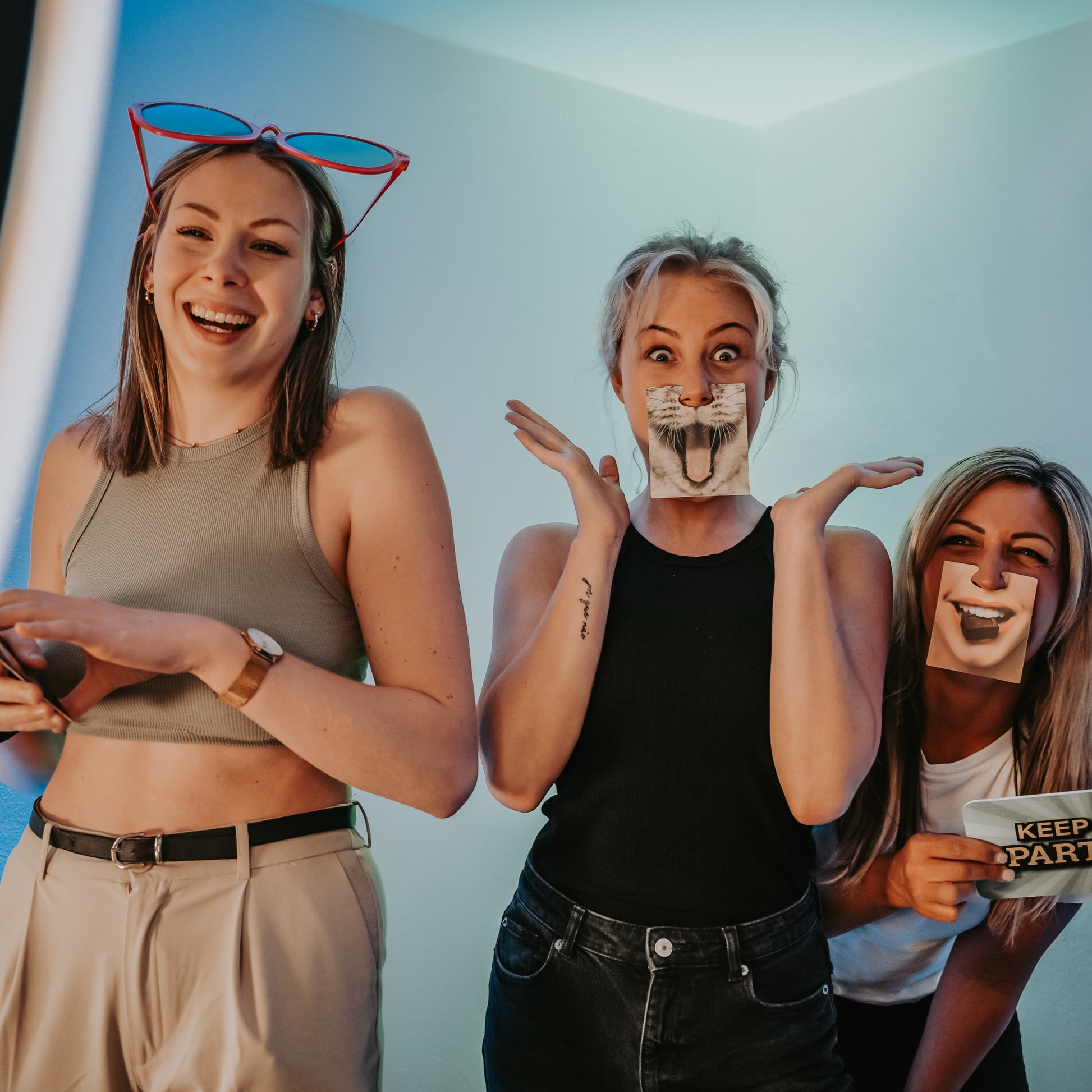 Diese lustigen Nasen-Masken sorgen bei deiner Fotobox sicher für lustige Momente! Einfach an die Nase hängen und schon hat man plötzlich ein großes Zungenpiercing, einen flauschigen Bart oder lächelt wie ein Baby. Die beidseitig bedruckten Karten aus Karton haben Motive aus den Themenwelten "Männer", "Frauen", "Kinder", "Senioren" oder "Tiere". Da ist sicher für jeden Fotobox Gast etwas passendes dabei.